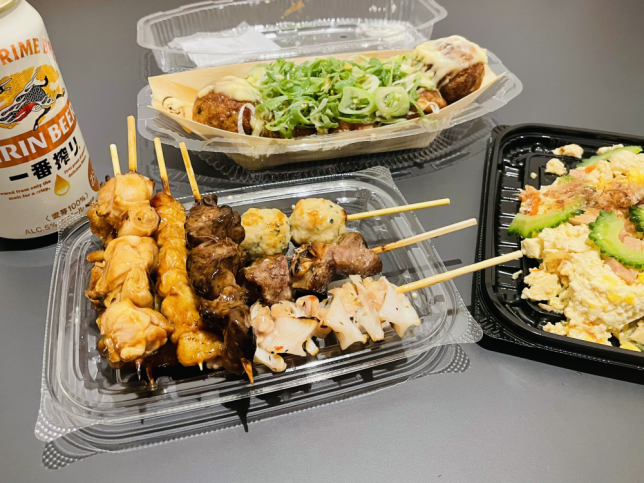 銀だこでたこ焼きを買って、駅ビルで夜ごはんやお酒を買い足してからホテルへ向かいます。飲みに行くことも考えたのですが(普段からGoogleマップで飲食店をチェック・保存しがち)とにかくゆっくりしたいので部屋で夜ごはんを食べることにしました。