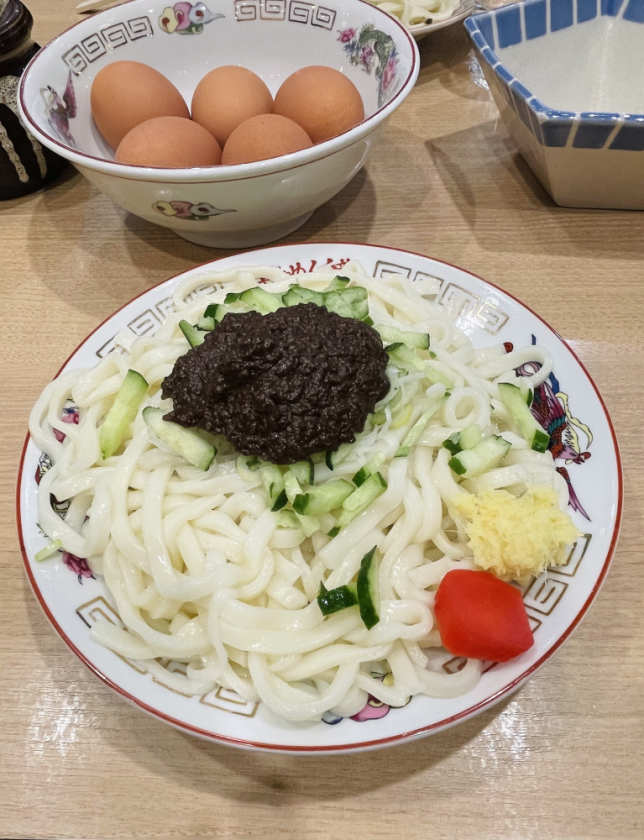 白龍(このじゃじゃ麺の店名)も、どんどんお客さんが増えている!混み合っているせいか、ちいたんたん(じゃじゃ麺のゆで汁でつくる、たまごスープのこと)をお店の人に急かされて焦りました。待って、ゆっくりたまご溶かせて?待って…(オタク!!!)