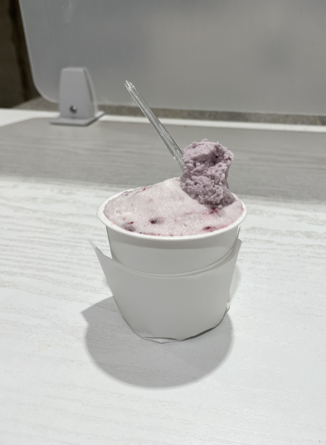 デパ地下でジェラート食べました。何年ぶりだろう…?選んだ味(ラズベリー)の上に、店員さんおすすめのジェラート(ブルーベリー)のせてくれました。サーティワンアイスでやってもらえるアレ、ですね。