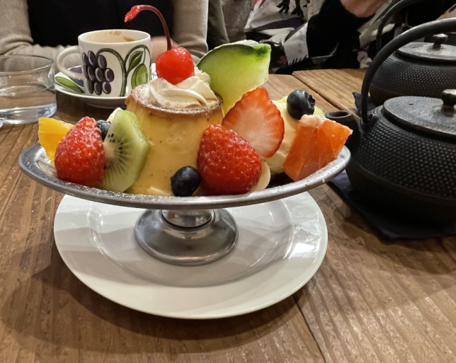 気になっていたカフェに行って、プリンアラモードを食べました。このお手本のようなお皿と固めプリン(大好き)すばらしい…。南部鉄器の鉄瓶も好感度、高いです(岩手出身並)
