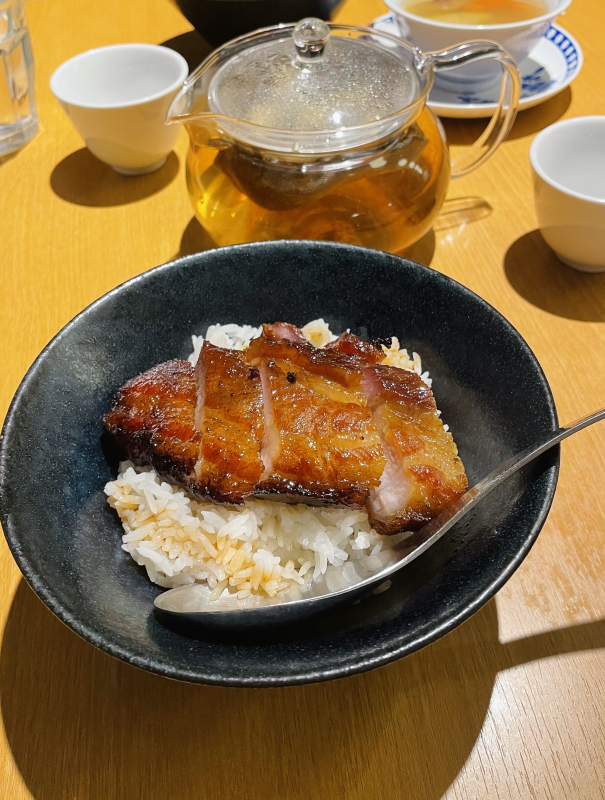 お昼ごはんに食べた、映画コラボの叉焼飯とプーアル茶です。