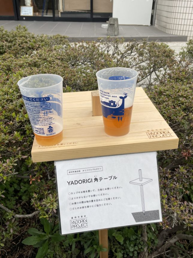 いつの間にか、植え込みの中に小さなテーブルがあちこちに設置されていました!こうやってちょっと飲み物を置けるスペース、ありがたい…。よ市のために、ここまで…!!(※毎週土曜日開催、冬の間は開催お休み)