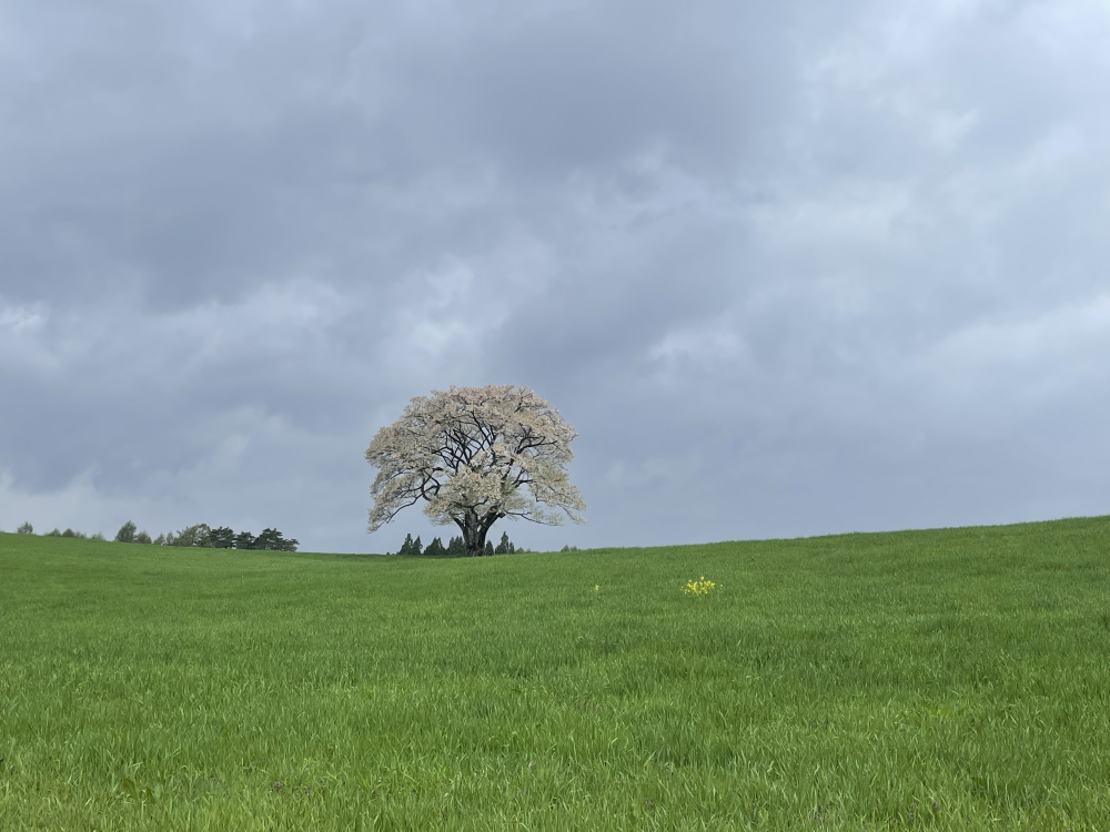 ほかには、小岩井農場の一本桜を見に行きました。午前中とは思えない曇りっぷりですが、撮影している人そこそこいました。先月は市内の桜、今月は一本桜でお花見できてタイミング良かったです!控えめに咲いている菜の花もなんだかかわいいです。