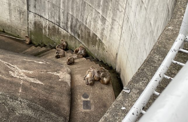 猿を毛づくろいしている猿を毛づくろいしている猿。あちこちに何匹かのグループができていて「社会」を感じました。