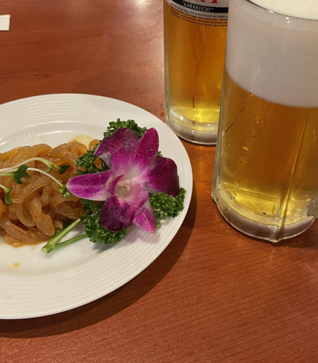 大好物、くらげの冷菜!!太いくらげ、嬉しい。しゅうまいや焼きそばなども食べました。