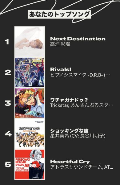 おまけ。今年たくさん聴いた曲ベスト5(Spotifyより)