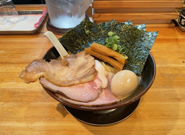 どの店にするか、その日ごとで話し合っています(?)ラーメン会議?この日はこってり系の…ラーメン!海苔+ごはん無料、ほぼ家系です。