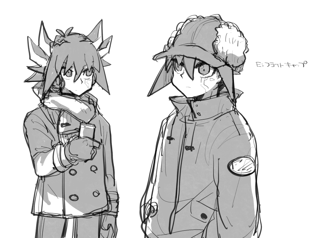 厚着な創作の2人です。私は暑がりですが冬の服装はかわいくて描くのが楽しい!